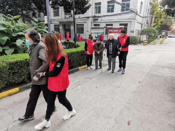 志愿者与老同志互相熟悉并送老同志回家