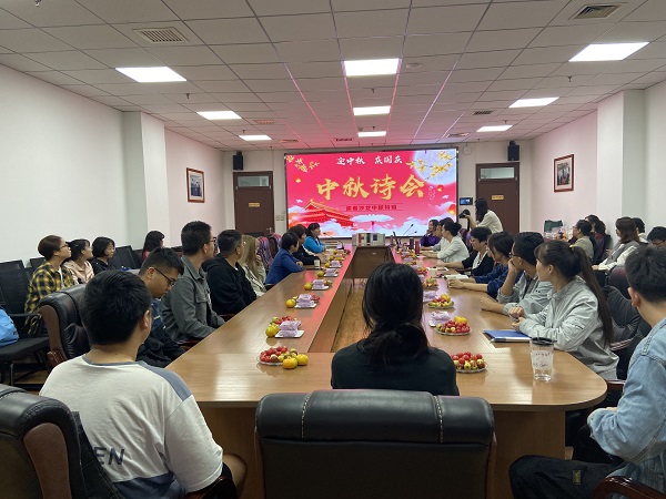 此次诗会由图书馆副馆长张湛睿主持,邀请了离退休工作处曹仲梅老师、退休教师张小莉老师、图书馆何军老师、外国语学院高翔老师分享与“中秋”相关题材为主的诗歌。