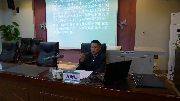 省纪委政策研究室副主任龚建强同志做培训